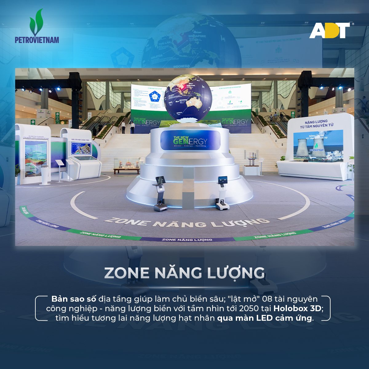 Trải qua 50 năm phát triển, vươn mình “từ Biển sâu tới Tầm cao”, Petrovietnam bứt phá từ Tập đoàn Dầu khí Việt Nam trở thành Tập đoàn Công nghiệp – Năng lượng Quốc gia Việt Nam.Trong khuôn khổ chuỗi sự kiện kỷ niệm 50 năm, Triển lãm Thành tựu Khoa học Công nghệ được tổ chức từ ngày 21 – 22/9/2025 nhằm tôn vinh những di sản nửa thế kỷ của Petrovietnam; khẳng định tầm nhìn chiến lược và khát vọng dẫn dắt tương lai năng lượng xanh, bền vững. Vinh dự đồng hành cùng Petrovietnam, ADT Global xây dựng kiến trúc trải nghiệm xuyên suốt cho Triển lãm với concept sáng tạo The New Genergy